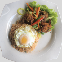 Nasi Goreng + Lauk Pad Kra Pao + Telur Mata